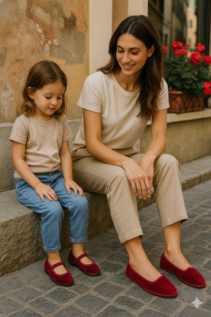 As a mother, I was searching for timeless shoes we could wear together — elegant yet practical, special yet easy enough for everyday life. Loved in Italy for generations, Friulane are known for their soft velvet, flexible recycled rubber soles, and artisanal craftsmanship.
